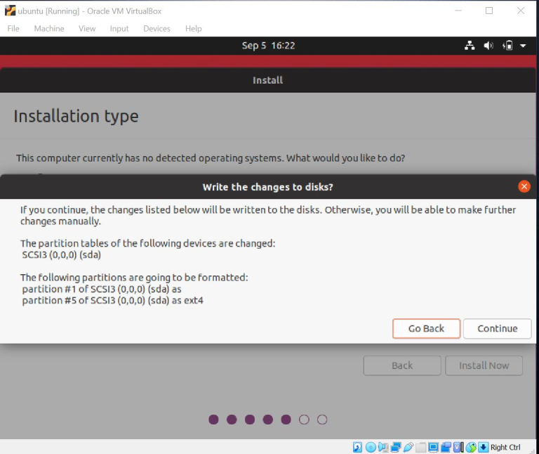Kemudian muncul keterangan apakah anda ingin merubah disk anda. Jika anda tidak ingin maka klik "go back" dan apabila ingin melanjutkan maka klik "continue". Disini saya klik "continue" untuk melanjutkan.