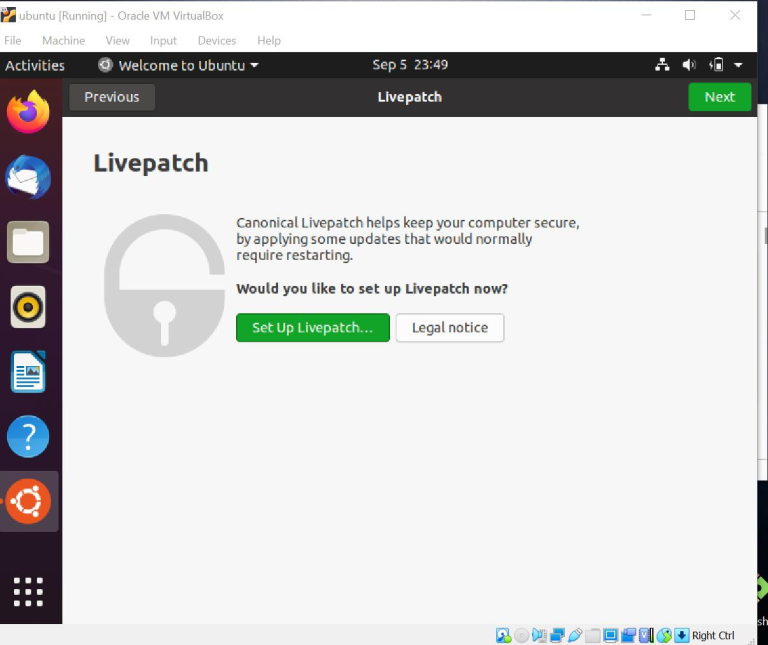 Live path ini berfngsi untuk menjaga keamanan komputer anda dengan menerapkan pembaruan yang biasanya memerlukan restart. Anda bisa klik tombol hijau dibawahnya untuk set up live path atau pilih "next" untuk lanjut.