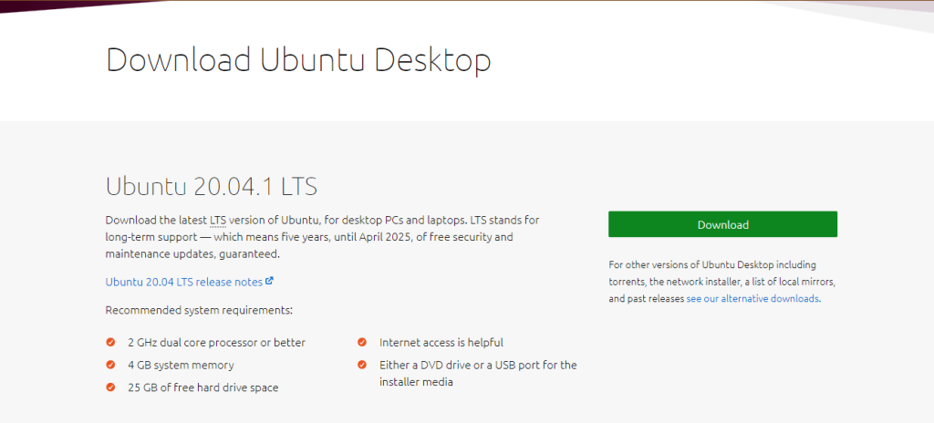 - Download ISO file Ubuntu di https://ubuntu.com/download/desktop