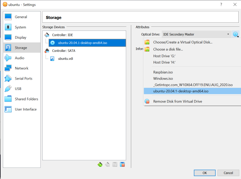 - Setelah download, buka menu opsi storage di virtual box dan masukkan file iso di storage yang “empty”. Kemudian klik “Ok”.
