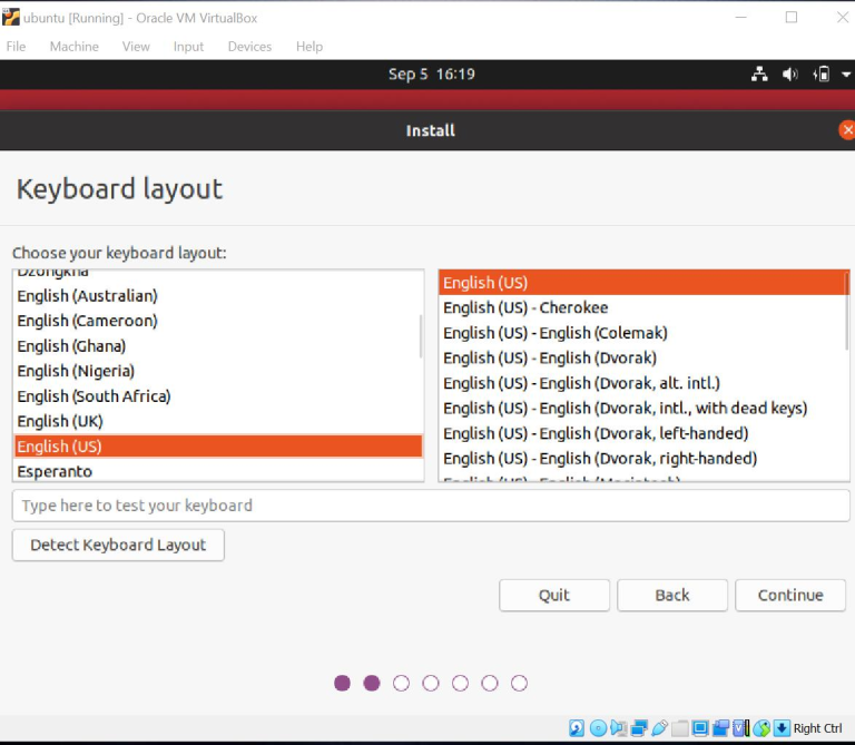 - Select Keyboard Layout