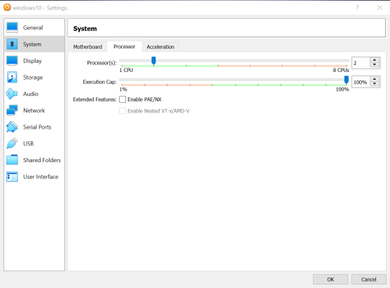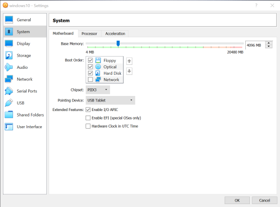 - Buka virtual box anda, kemudian masuk ke bagian setting windows 10.