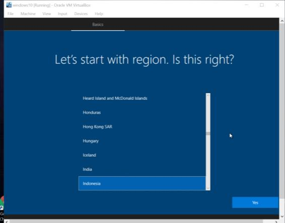 Setelah restart, akan tampil opsi pemilihan region. Pilih regionmu kemudian klik "next" untuk melanjutkannya.
